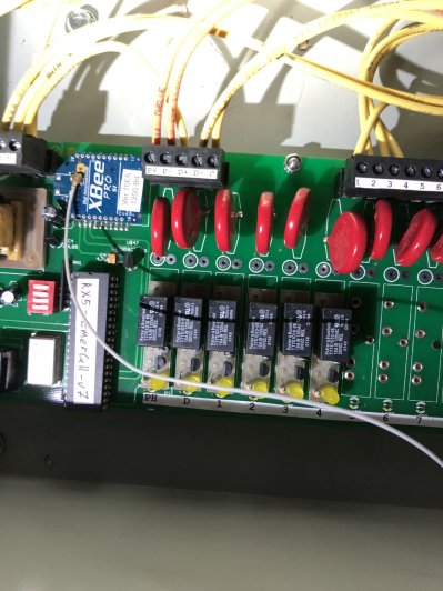 This board is mounted somewhere on the elevator car (usually behind the elevator buttons) and receives commands from the remote controls via antennae on the outside of the car.